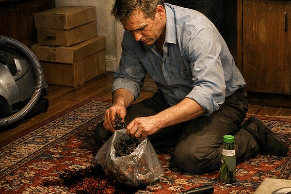 A man obsessed with symmetry “fixes” a bulging rug—until a nosy neighbor comes knocking, and the tidy apartment hints at something rotten.